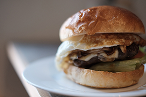 ランチではハンバーガーがメインで、常時15種類程のハンバーガーメニューが揃っています。その他、月替りのパスタやハンバーグもあります。また、デザートなども充実しています。メニューは基本的にアメリカ料理ですが、国籍問わず幅広い料理も提供されています。なかでもピザはパイ生地で珍しいと人気の商品です。