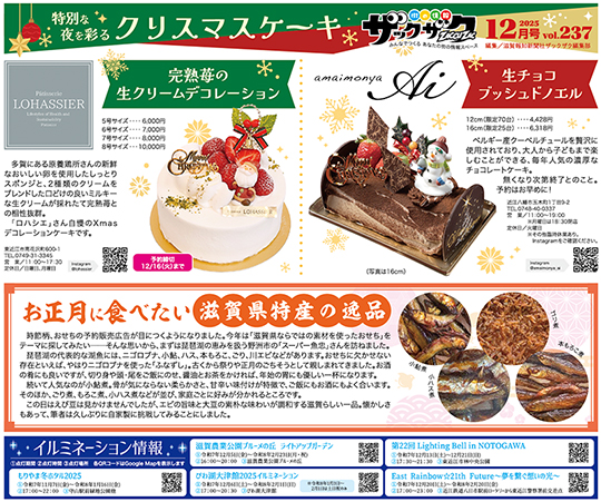 「特別な夜を彩るクリスマスケーキ/お正月に食べたい滋賀県産の逸品/イルミネーション情報」